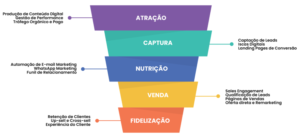 Na captura desenvolvemos landing pages e iscas digitais, trazendo o usuário para o funil com técnicas de Tráfego Pago.